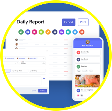 REAL-TIME UPDATES. Receive daily electronic reports & real-time communication through Brightwheel.